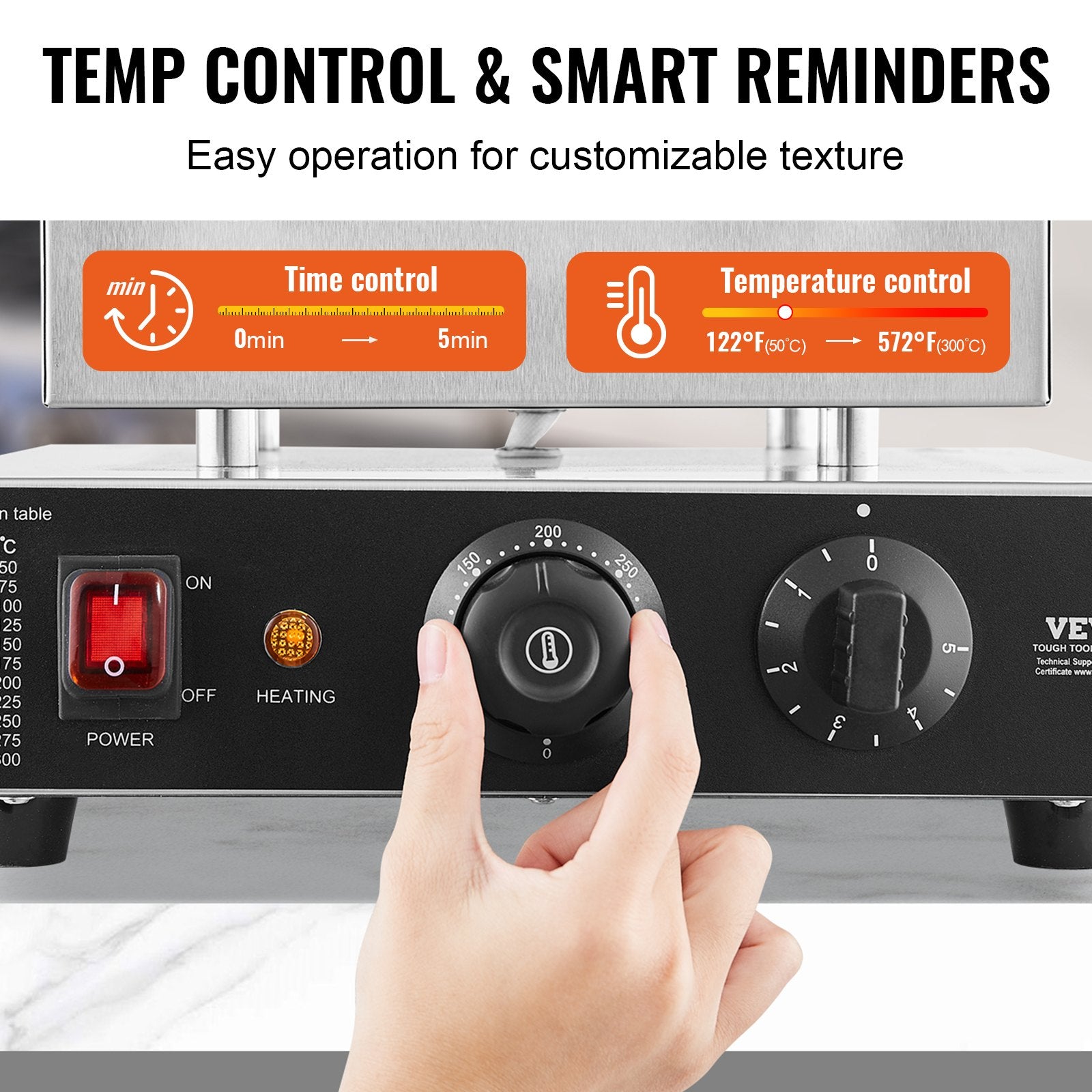 Easily customize your pancakes with the adjustable temperature knob (122–572°F / 50–300°C). Whether you prefer crispy or soft, this baker lets you create waffles exactly the way you like. Audible alerts guide you when to add batter and indicate when your pancakes are perfectly cooked—no need to watch constantly.