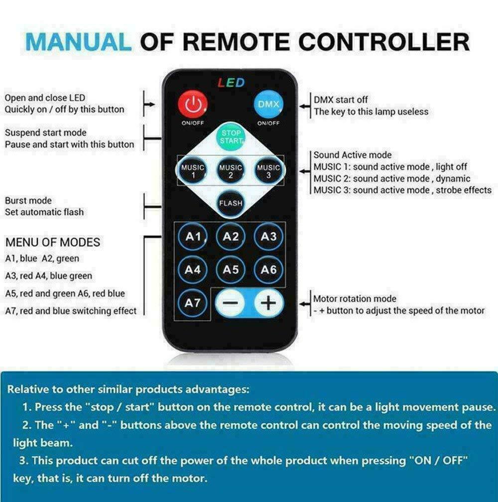 - Included in Package: 1 x Disco Light (US Plug) 1 x Remote Control 1 x Stand 2 x Screws 1 x English User Manual